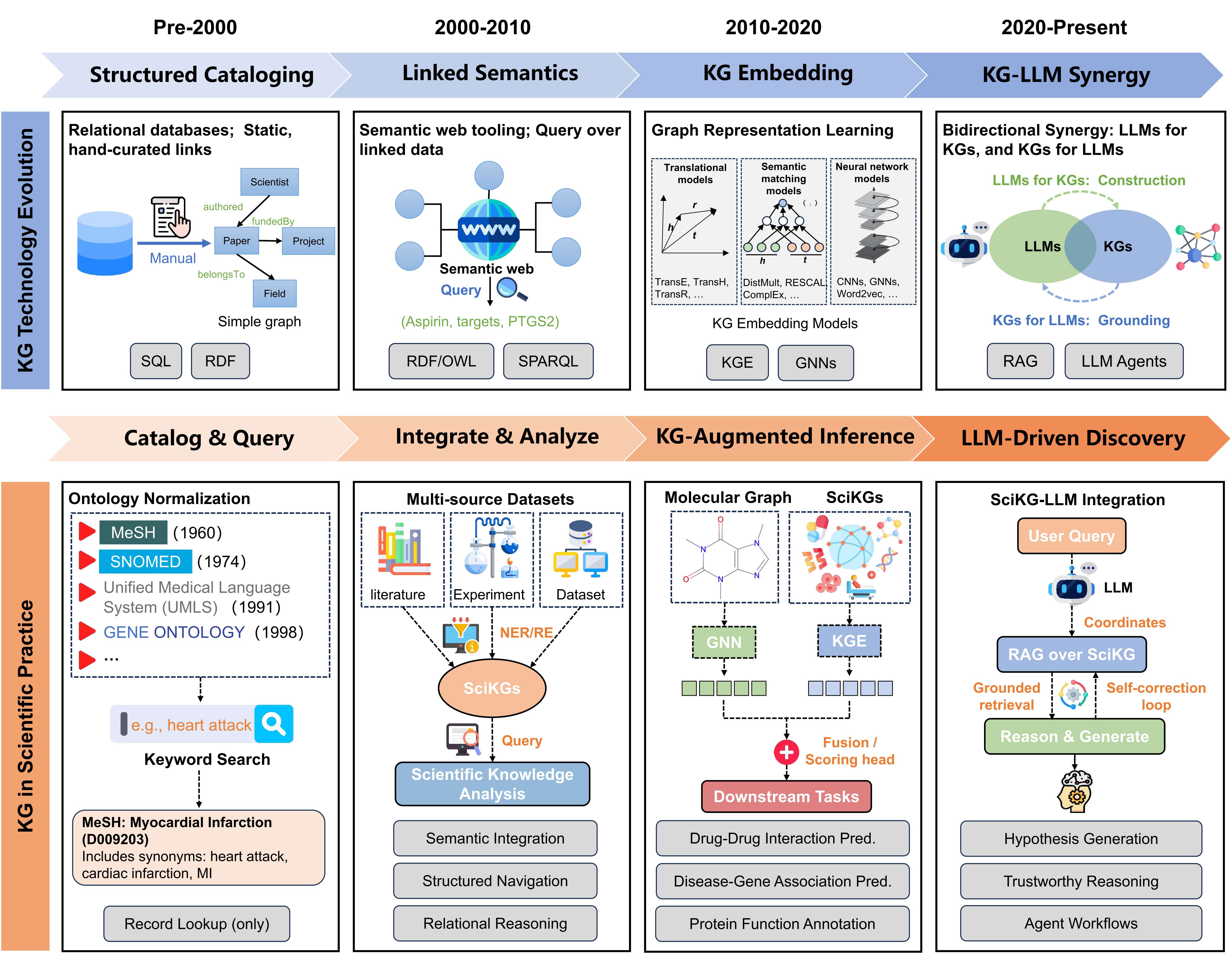 Figure 1: The evolution of scientific knowledge graph technology and the transformation of scientific practice.